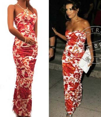 @@@ Product Details : Eva Longoria's Dress Print Long Full Evening Strapless Stretchy (Medium, Red & white Pattern)